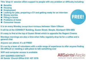 Open every Saturday from 10 am – 12 noon. It is situated at ‘Connect’ at the top of Queen Street Marple SK^ 6BQ (Queen Street is opposite Marple Cinema)